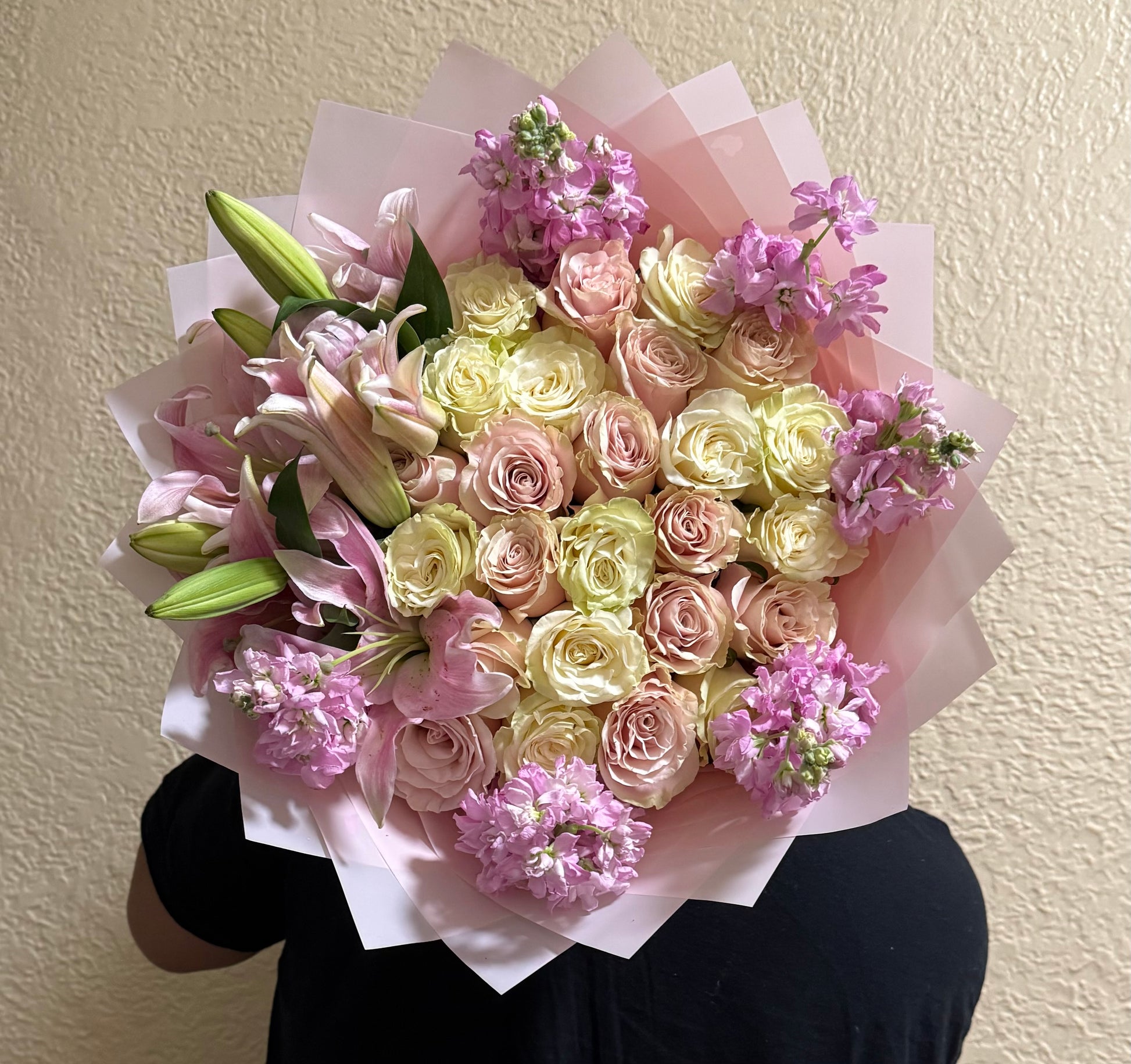 50 rosas - 6 Lilis- 15 stock- 10 eucalipto